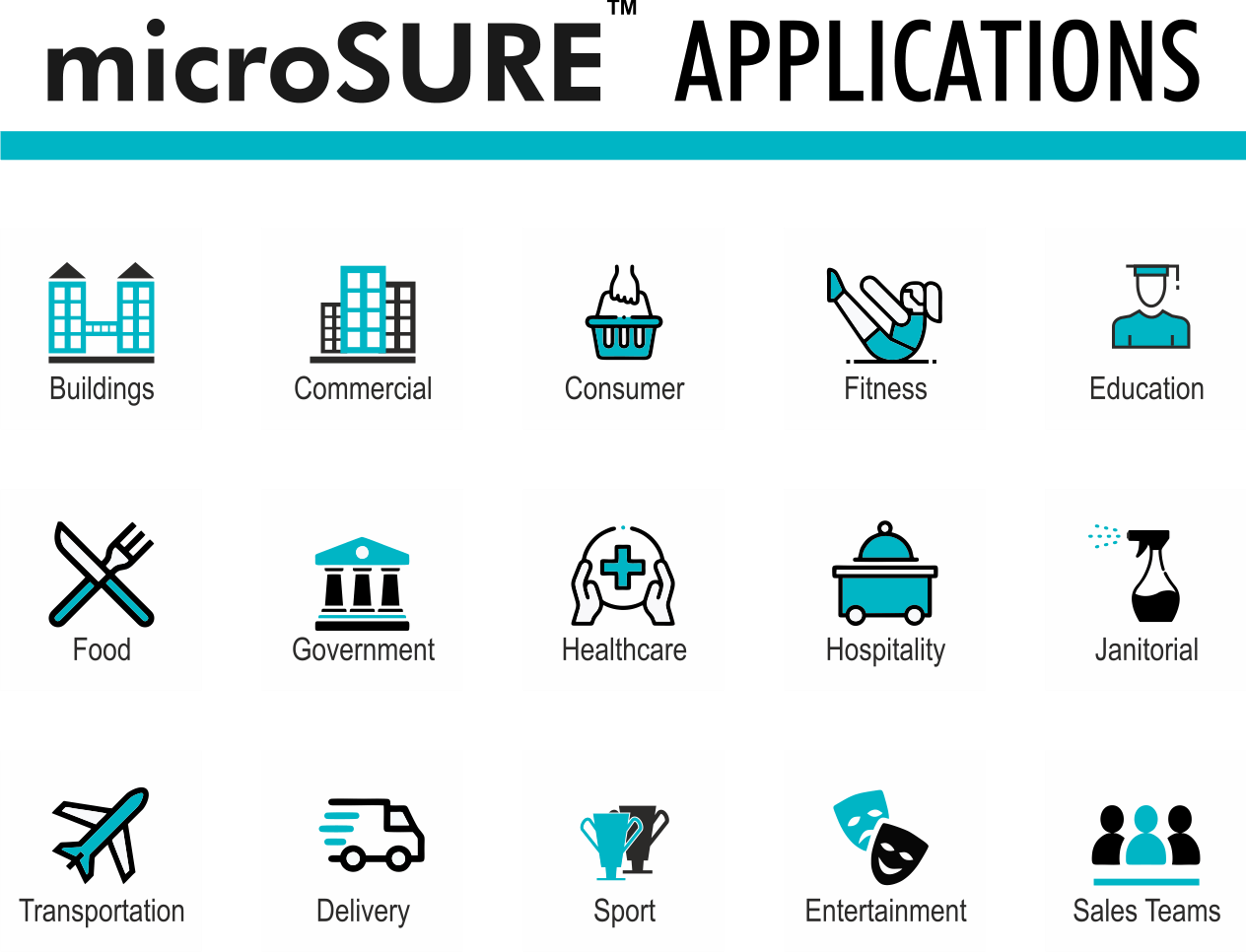 When applied to your hands or skin microSURE™ products create a long lasting protectant barrier which destroys a wide range of harmful pathogens including SARS-Co-V2.